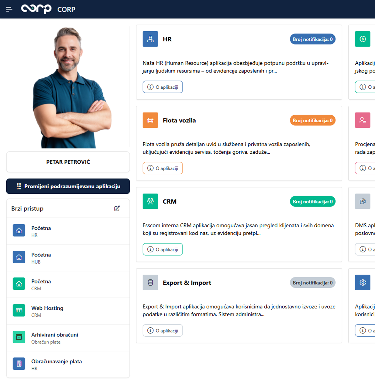 CORP ERP web aplikacija je integrisano rješenje za upravljanje poslovnim procesima u savremenim organizacijama. Omogućava centralizaciju i automatizaciju različitih poslovnih funkcija poput finansija, ljudskih resursa, prodaje, nabavke, skladišta, projekata i proizvodnje. Pruža uvid u podatke u realnom vremenu i pomaže u donošenju strateških odluka.