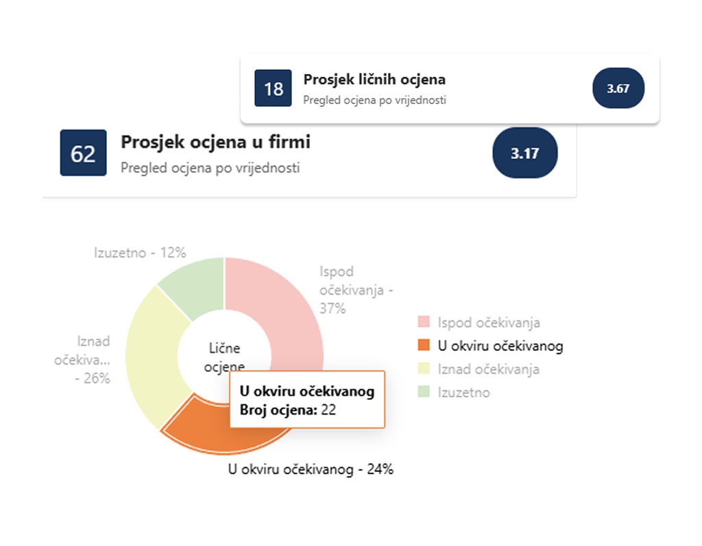 Praćenje i evidencija ocjena radne uspješnosti kroz vrijeme, uz lične planove razvoja i programe usavršavanja zaposlenih.